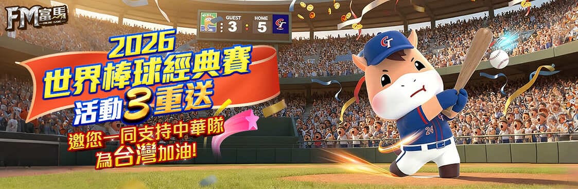 2026WBC世界棒球經典賽即將開打,中華隊參戰期間,富馬娛樂城推出三重加碼活動,涵蓋勝場預測、名次競猜與串關加碼等內容,只要達成活動條件即可領取對應彩金!